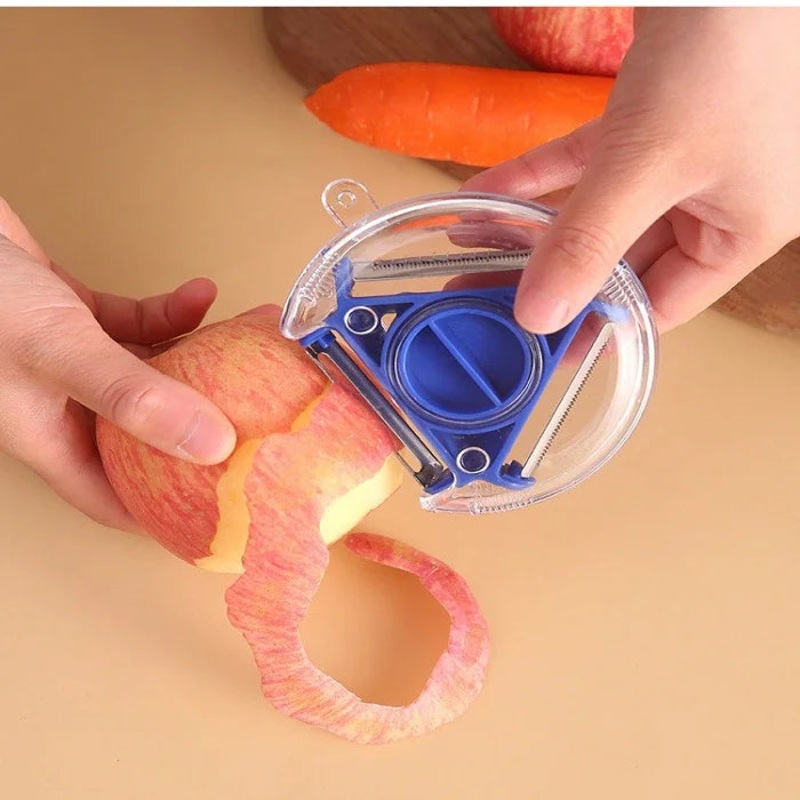 Usage: Use this 3-in-1 peeler in your kitchen to quickly peel and prepare a wide range of fruits and vegetables. Whether youre making a hearty stew, a fresh salad, or a fruit platter, this versatile tool ensures efficient and precise food preparation.