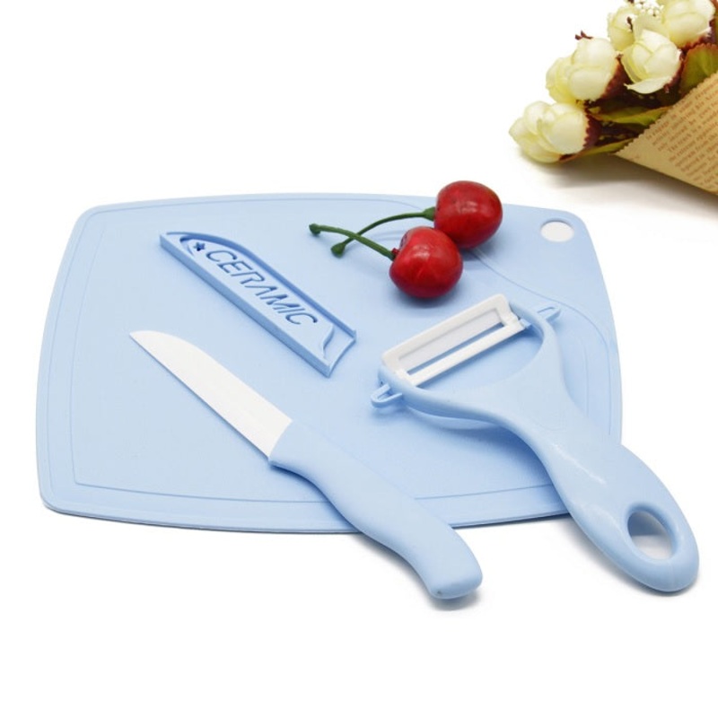 Material: PP Product Weight: 200 Grams Product Dimensions: 23 x 18 x 2.5 Cm Packaging Dimensions: 25 x 20 x 5 Cm Package Content: 1 Set includes Chopping Board + Knife + Peeler 1. The handle is made of PP plastic and the blade is made of ceramic. 2. The kn