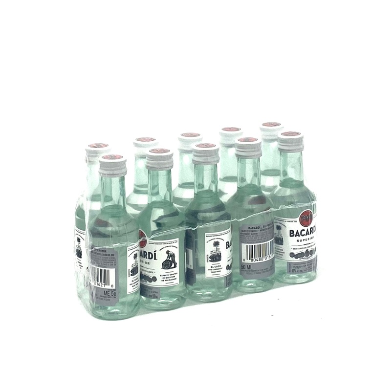 Bacardi Superior White Rum 10 x 50 ml is like the versatile wingman you never knew you neededsmall, strong, and ready to help you craft the perfect cocktail wherever the night takes you. This is a sleeve of 10 x 50 ml bottles of the Bacardi "Superior White