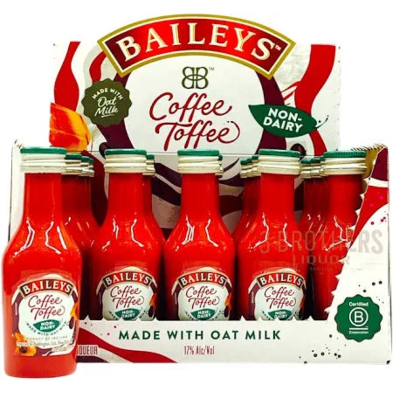 This is a “sleeve” of 20 (twenty) 50 ml “airplane” bottles of Baileys Coffee Toffee Non-Dairy Liqueur Made with Oat Milk.