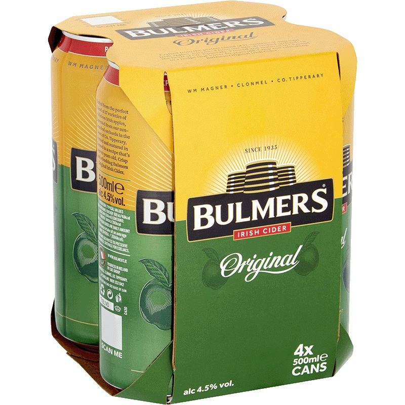 Bulmers Original Irish Cider, produced in Clonmel, County Tipperary, is a classic Irish cider crafted from a blend of 17 apple varieties. Since 1935, Bulmers has been synonymous with quality Irish cider, delivering a refreshing and authentic taste of Irela