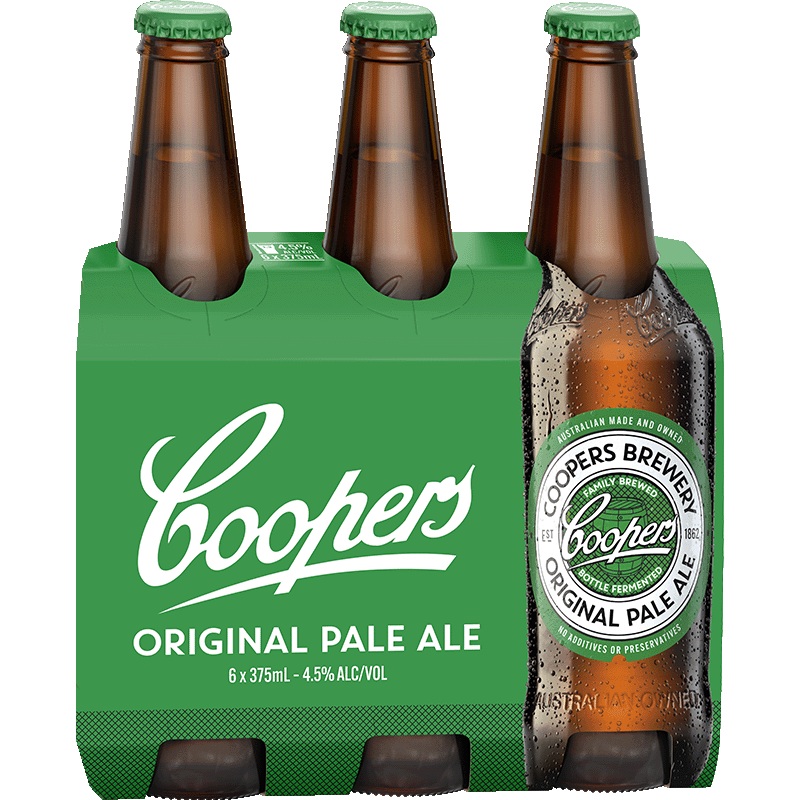 Coopers Original Pale Ale is a traditional Australian beer. It is known for its distinctive cloudy appearance from bottle fermentation that produces a signature fine cloudy appearance. Coopers Pale Ale features fruity and floral flavours balanced with a cr