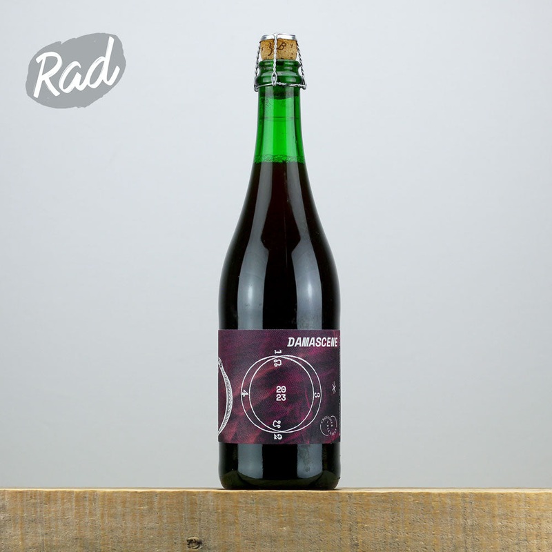A blend of 1 & 2 year old golden ales brewed with malted barley, malted rye, malted oats and raw wheat. Spontaneously fermented and aged in neutral French oak barrels. The beer was moved onto Damascene damsons (Styan Family Produce, Worcestershire) in tank. It remained there for 4 months with punch-downs performed during the initial stages of refermentation. The beer was then blended back with further components before bottling.