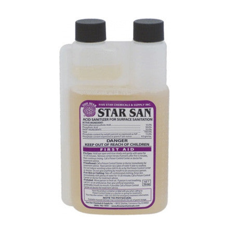 Star San is an acid-based sanitizer that is quick, odorless, tasteless and safe for most materials except softer metals. Use of 1 oz per 5 gallons of water and a contact time of 1 minute makes Star San very economical and convenient.As a high foamer, Star