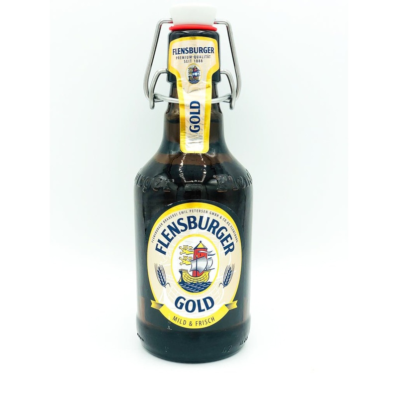Flensburger Gold is a mild tasting beer, pale in colour with a good head and an elegant hoppy touch.A pale golden beer brewed like a pils, a full, soft and fresh taste and a pleasantly light yeasty bouquet. ABV 4.8%