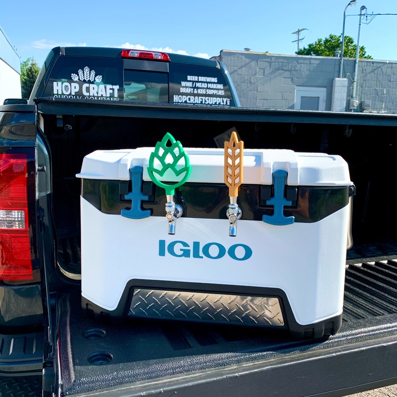 A jockey box is a portable draft beer dispensing system. We start with a quality cooler that can hold ice all day. The cooler is then modified to be fitted with draft beer dispensing equipment that run through 50-foot stainless coils inside the cooler. The cooler is filled with ice, keeping the coils inside ice cold. Your kegs are hooked up via our optional connection kit, or with your owntaps if you have an existing kegerator or draft system. As the beer runs through stainless coils inside the cooler, the beer is cooled and dispensed ice-cold, all day long.