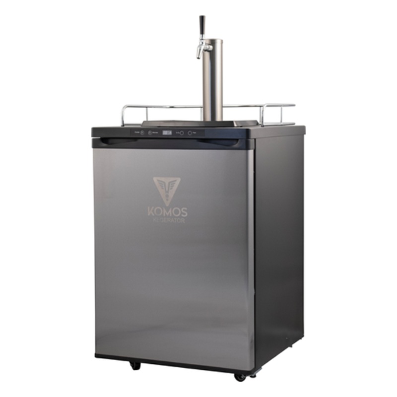 The new KOMOS V2 Kegerator builds upon the stellar feature set of the best-selling original model, sporting upgraded components for faster cooling and more efficient operation, and a redesigned interior that can hold up toFOUR5-gallon kegs at one time. Theres no doubt that a four tap kegerator has never been so affordable! We love the KOMOS kegerators ease-of-assembly thanks to Duotight fittings and EVABarrier draft line, as well as the many other features that set it apart for a unit in this price range, including stainless steel Intertap forward-sealing faucets, stainless steel tower, digital controller, stainless steel door, stainless steel floor, rolling casters, tower cooling fan, and robust KOMOS regulator.