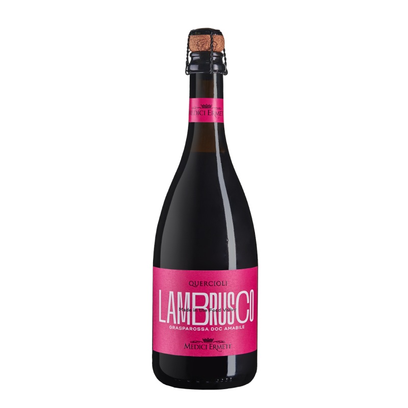 Medici Ermete Lambrusco Reggiano Quercioli DOC NV Medici Ermete Lambrusco Reggiano Quercioli DOC NV is a fruity semi-sparkling and slightly sweet red wine. Bright ruby red colour with a fine, rich bubbles. Persistent bouquet of violet florals, red and blac
