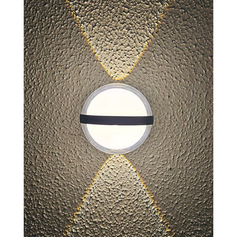Illuminate your outdoor space with the sleek and modern Modern Disc Up-Down Outdoor Wall Light. Constructed with a disc-shaped design, this wall light provides both upward and downward lighting, creating a warm and inviting atmosphere. Its contemporary sty