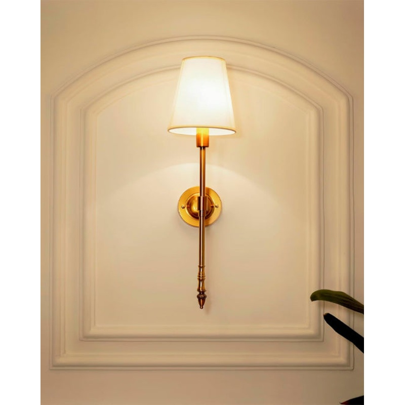 This Modern Empire Shade Wall Lamp emphasizes the luminous quality of the lamp shade, evoking a sense of modern elegance and sophistication. It suggests a sleek and stylish lighting option for any interior space.