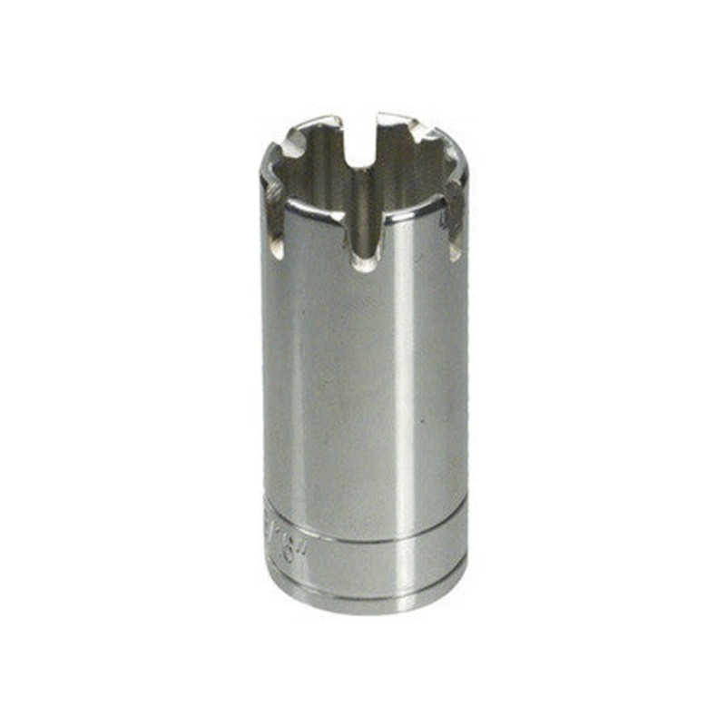This specially cut socket is made to remove or tighten pin lock keg posts. Fits both gas in and beer out keg posts. This socket requires a 3/8" driver.