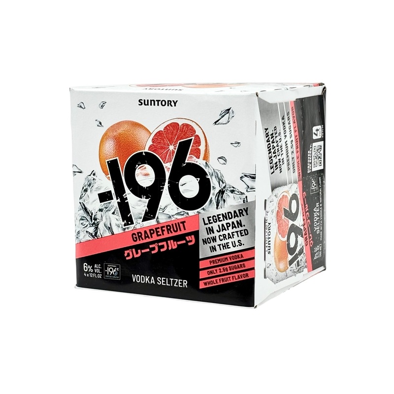Suntory -196 RTD Grapefruit Vodka Seltzer is like a bubbly citrus punch that shows up to the party, kicks the door open, and makes sure everyones having a good timerefreshing, tart, and with a little vodka swagger. 5.5% ABV, 4 x355 ml cans -196, pronounced