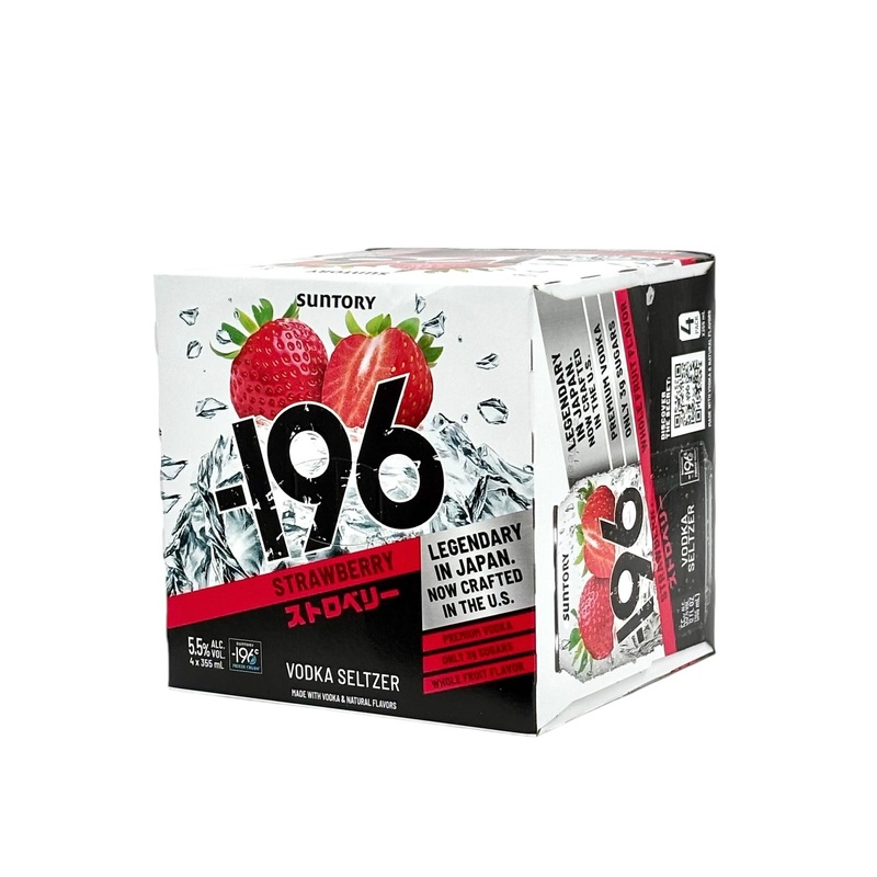 Suntory -196 RTD Strawberry Vodka Seltzer is like a strawberry just got upgraded to first classsweet, fizzy, and with a little vodka to make sure it arrives at the party ready to impress. 5.5% ABV, 4 x355 ml cans -196, pronounced Minus One Nine Six, is a v