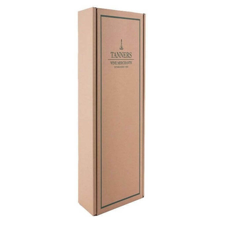 A 1 bottle gift carton with front opening, in a smart natural "kraft" brown finish, branded with our trademark Tanners logo. 100% Recyclable. This gift box should only be purchased in the same order as the equivalent or greater number of wines to fill it.