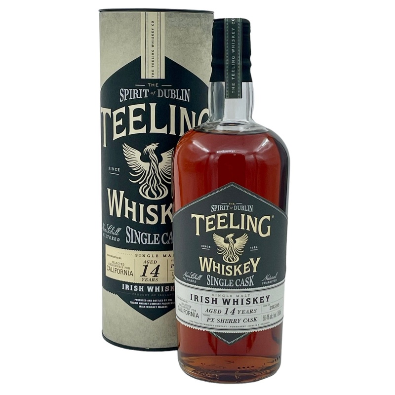 The Teeling 14-Year-Old California Edition Single Cask PX Sherry Irish single malt is a deeply rich, sherry-infused gembold, complex, and full-flavoredboasting dried fruit, dark chocolate, roasted nuts, and a lingering sweet-spice finish at cask-strength BOM (56.4% ABV).