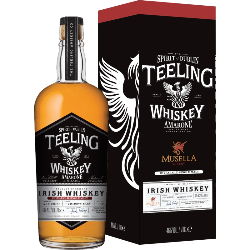 Limited release Teeling Whiskey, available exclusively at O'Briens. This 12 year old single malt Irish whiskey was finished, in Italian Amarone wine barrels from our partners at Musella winery, resulting in a rich and complex flavour. Presented in a,gift b