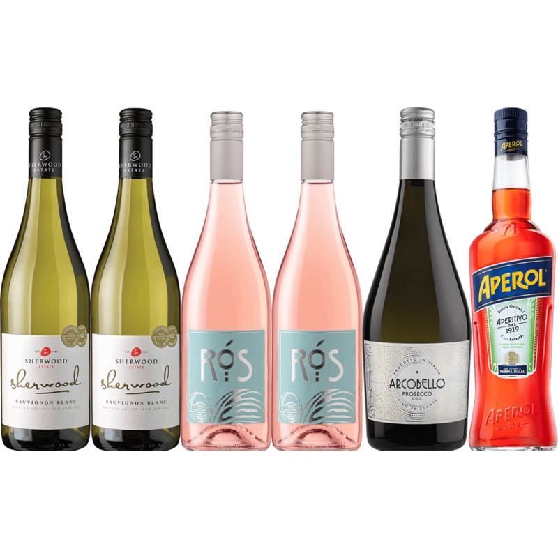 Theres two bottles of crisp Rs Ros (great with food!), two bottles of top New Zealand white Sherwood Sauvignon Blanc, a bottle of delicious Arcobello Prosecco and, of course, a bottle of Aperol, the cult Italian aperitif. After all, whats a summer without an Aperol Spritz? Its your summer sorted and delivered to your door in just a few clicks!