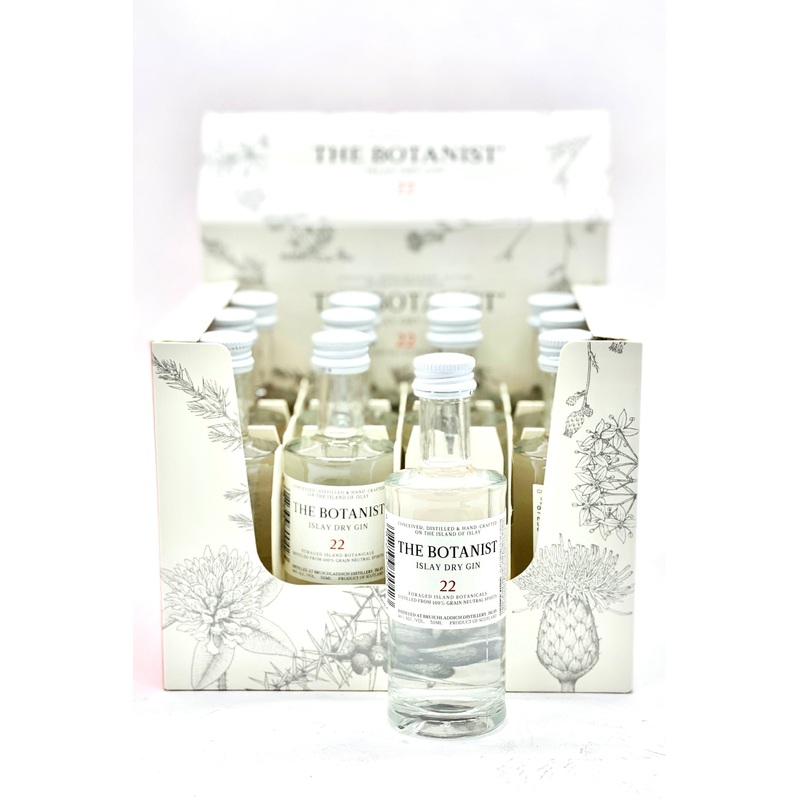 46% ABV, 12 x 50 ml, this is 12 (twelve) 50 ml miniature bottles of Botanist Gin. "The Botanist Gin is a small-batch, artisanal Islay Dry Gin combining nine classic gin botanicals with a further twenty two others that are local to the island. With 31 botan