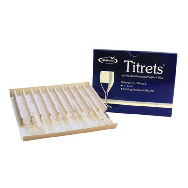 NOTE: You will need a Titrettor to use properly. Titret kits are for white wines only. SO2 testing with the Titret Kits may produce unreliable results if the wines contain Ascorbic Acid (Vitamin C) or excess tannins.Users should test SO2 before adding either of these additives.