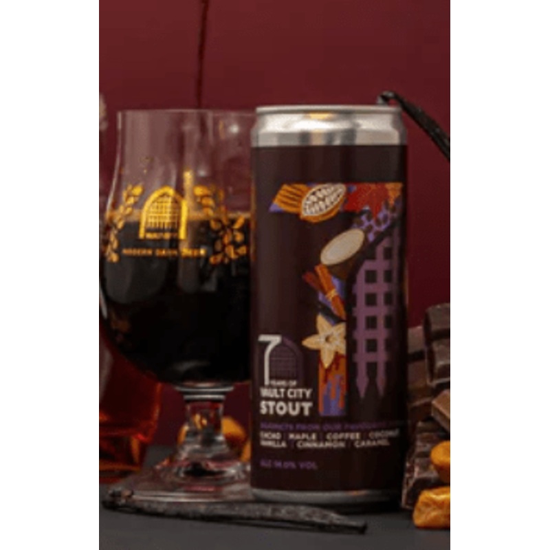 Brewed to mark Vault City's 7th birthday, this decadent imperial stout layers chocolate cacao nibs, maple syrup, coffee, coconut, vanilla, cinnamon, and caramel into something luxuriously smooth and full-bodied. 14%